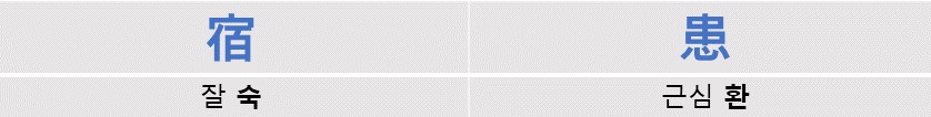 구병(久病 / 오랠 구, 병들 병), 고질(痼疾 / 고질병 고, 병 질), 숙아(宿疴 / 잘 숙, 병 아), 침고(沈痼 / 잠길 침, 고질병 고), 숙질(宿疾 / 잘 숙, 병질)