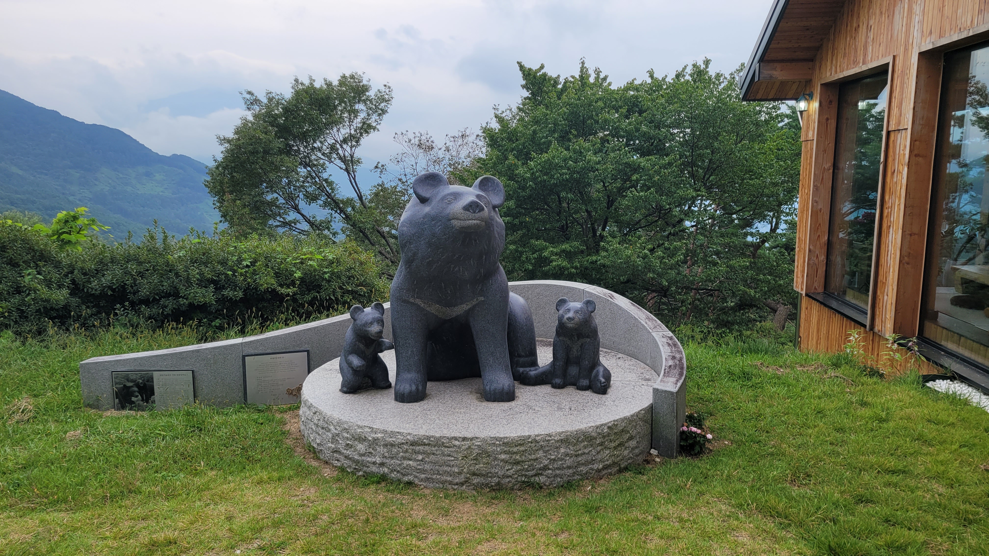 반달곰 가족 조각상이 있고