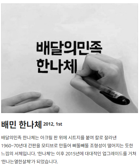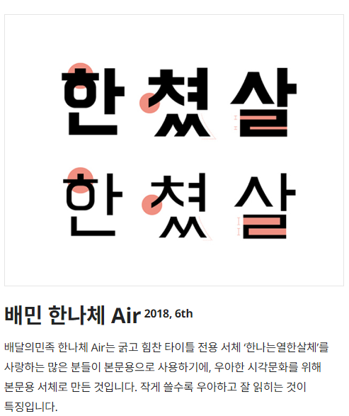 출처 : 우아한형제들 https://www.woowahan.com/fonts 배달의 민족 '한나체 Pro'