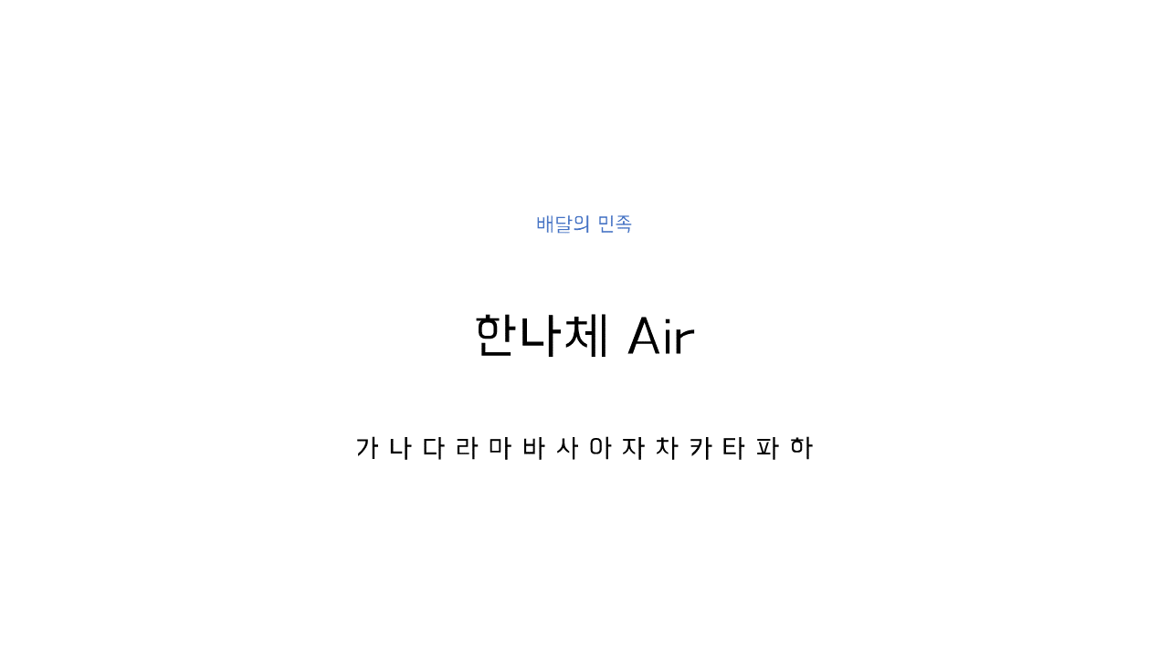 출처 : 우아한형제들 https://www.woowahan.com/fonts 배달의 민족 '한나체 Air'