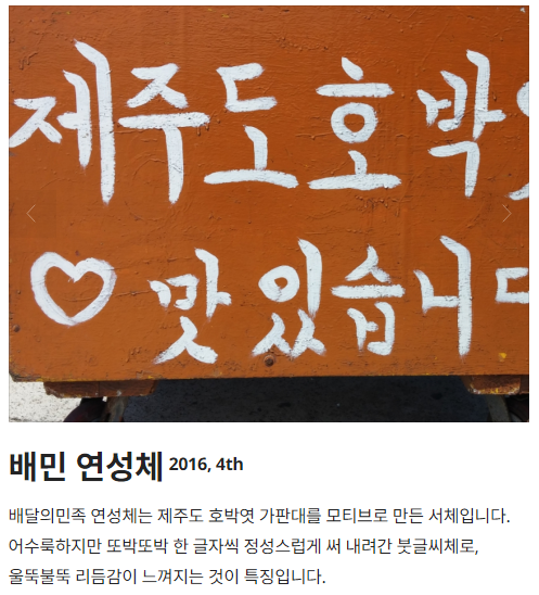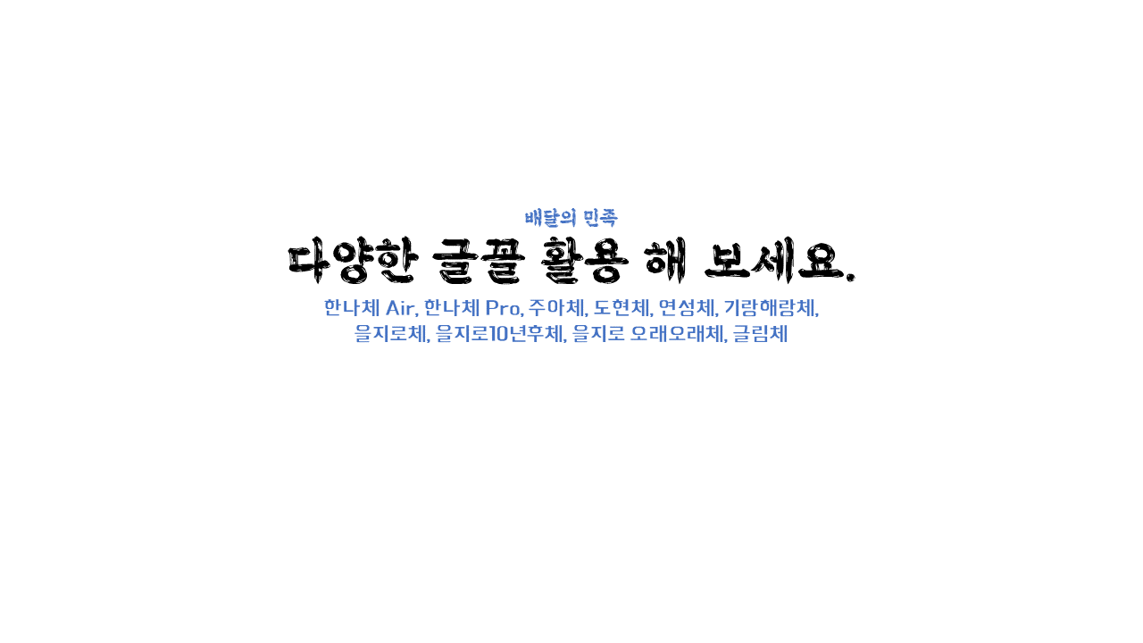 출처 : 우아한형제들 https://www.woowahan.com/fonts 배달의 민족 '연성체'