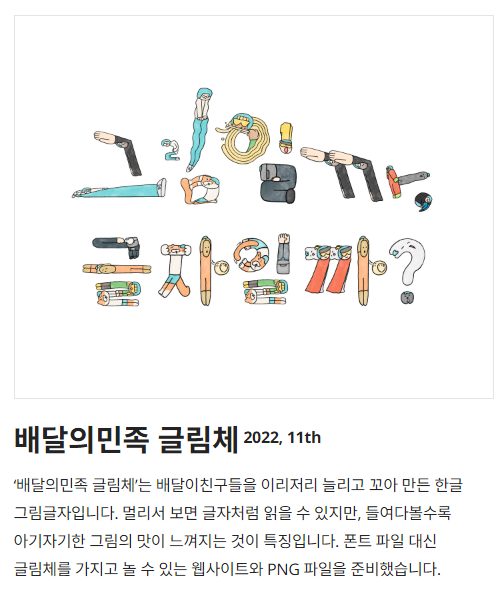 출처 : 우아한형제들 https://www.woowahan.com/fonts 글림체 웹사이트