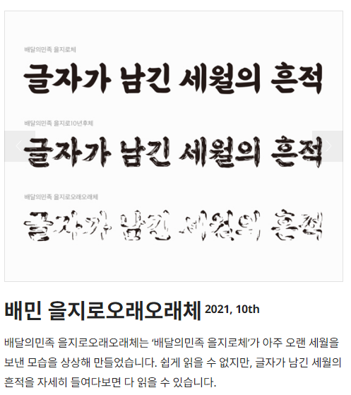 출처 : 우아한형제들 https://www.woowahan.com/fonts 배달의 민족 '을지로 오래오래체'