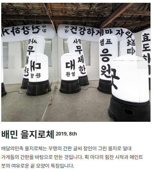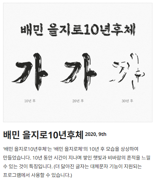 출처 : 우아한형제들 https://www.woowahan.com/fonts 배달의 민족 '을지로 10년후체'
