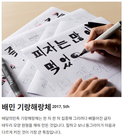 출처 : 우아한형제들 https://www.woowahan.com/fonts 배달의 민족 '기랑해랑체'