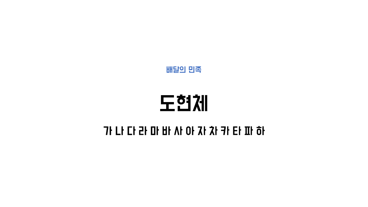 출처 : 우아한형제들 https://www.woowahan.com/fonts 배달의 민족 '도현체'