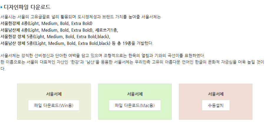 출처 : 서울특별시 https://www.seoul.go.kr/seoul/font.do