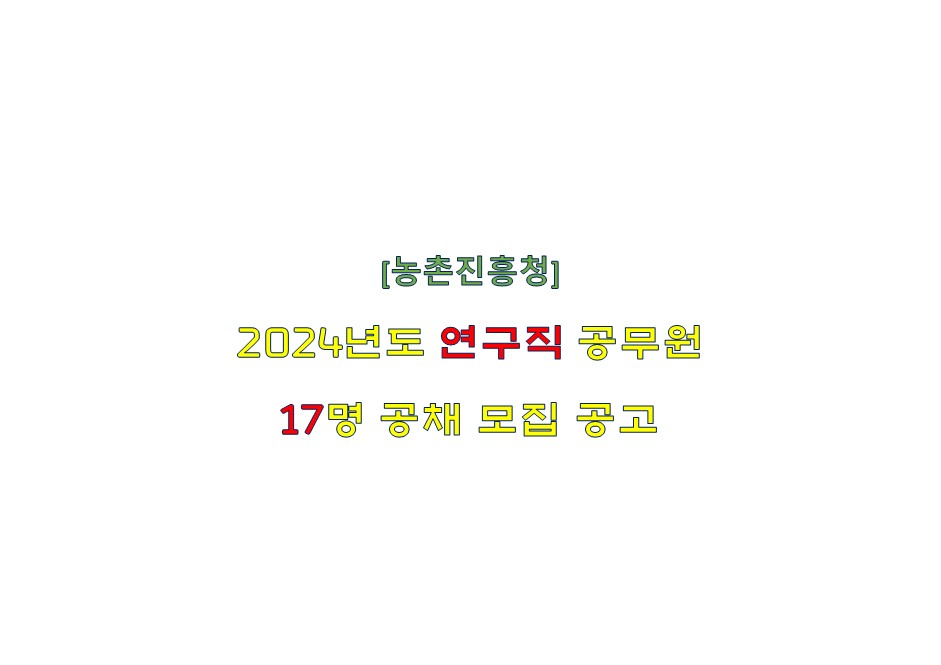2024년도 농촌진흥청, 연구직 공무원 17명 공채 예정■ AGRICULTURE|농업/농업 알림 2024. 1. 4. 15:47